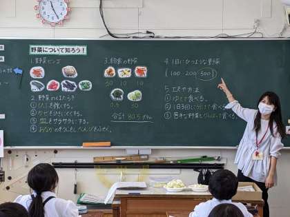野菜の体の中での働きを知ったり、今日の給食で使われている