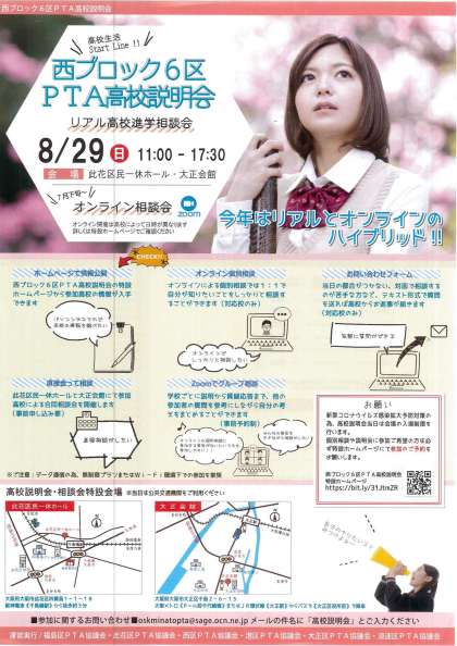 参加をご希望されるご家庭は、「西ブロック6区PTA高校説明会」と検索してみてください。