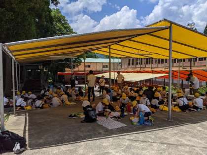 11時40分ごろ宿舎に到着しました。皆、元気です。開舎式の後、お弁当タイムです。朝が早かったので、お腹がペコペコの子どもたち。美味しくいただいています。お弁当を準備していただき、ありがとうございます。