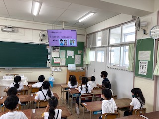 校長先生から「2学期にがんばること」として、「コロナ対策をさらにきちんとする」「熱中症に気をつける」「友達と仲良くし、ありがとう・ごめんなさいを言う」などのお話があり、さらに自分でめあてを決めてがんばろうというお話がありました。