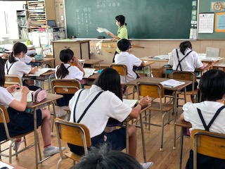 5年生は、夏休みの宿題の答え合わせをしていました。