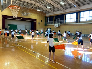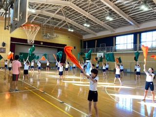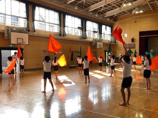 曲に合わせて、大きくフラッグをふったり、回ったり、一生懸命に練習していました。