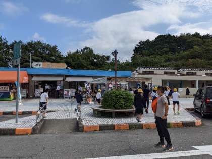 2回目のトイレ休憩。バスの中では寝ている子どもたちが多いです。バスでは元気が出る音楽が流れています。