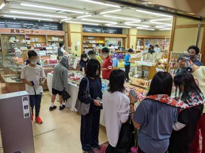 喜ぶ顔を想像しながら真剣にお土産を選ぶ子どもたち。
