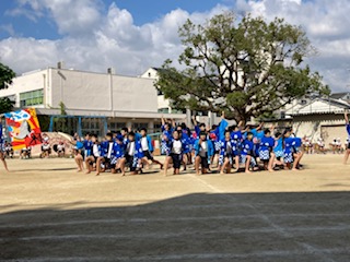 5年生のエイサー「片ヒラ口説」、6年生の「48人、心を1つに。」です。