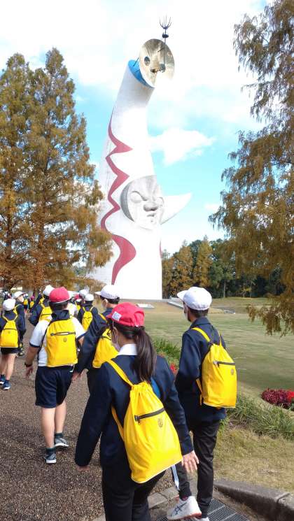 朝からあいにくのどんよりとした天候のなか出かけた5年生。大正区は午前中、雨が降ったりやんだりだったので、万博公園の空模様を心配しながらの出発となりました。