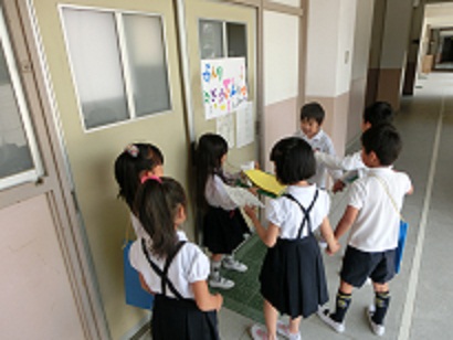 2年生が、1年生をグループごとに連れて、校内を案内してまわりました。1年生に一生懸命各部屋や場所のことを説明する2年生の姿に、確かな成長を感じました。そして何よりも1年生を思いやる温かい心の育ちを感じるひとコマでした。