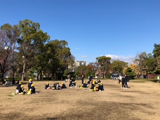 お昼ご飯は、天気に恵まれ、ポカポカ陽気のもと広場でお弁当を食べました。