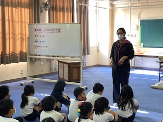朝ごはんをしっかり食べて、スイッチをばっちり入れて、3学期もがんばろう、という話に、1・2年生は聞き入っていました。