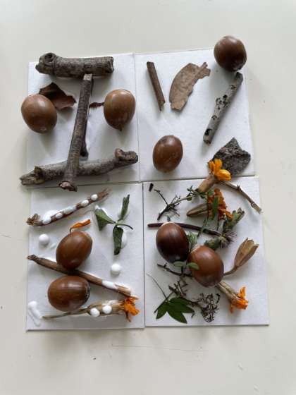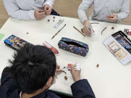 「冬さがし」をして見つけてきた葉や枯れ木、どんぐりなどをつかいます。