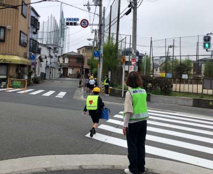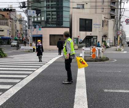 小学生だけでなく、中学生も社会人の方も、親しげにあいさつされています。もうずっと長い間、見守りを続けてくださっていることがよくわかります。