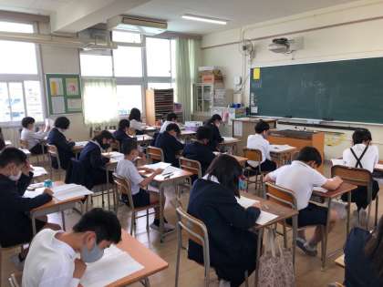 6年生が全国学力・学習状況調査に取り組みました。とても集中しています。問題用紙をめくる音さえ聞こえるほどです。今年は国語・算数と質問紙に加え、理科のテストもある年でしたので、終わった時にはとても疲れてしまったことと思いますが、最後まで諦めずにやり切れたことでしょう。