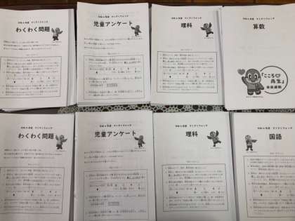 5年生は国語、算数、理科の教科問題と教科横断型問題(わくわく問題)、児童アンケートに回答。6年生は教科問題以外に取り組みました。