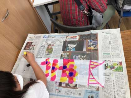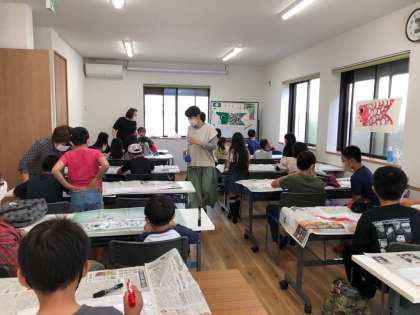 一人ひとりが宿題に取り組んだ後は、みんなで鯉のぼりづくり。この後、会館の前に飾られます。