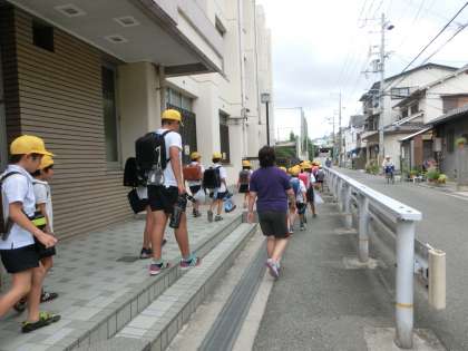 5時間目終了後は、台風や災害を想定しての地区別一斉下校。高学年の児童は、低学年の児童を守りながら、みんなで安全に下校することができました。