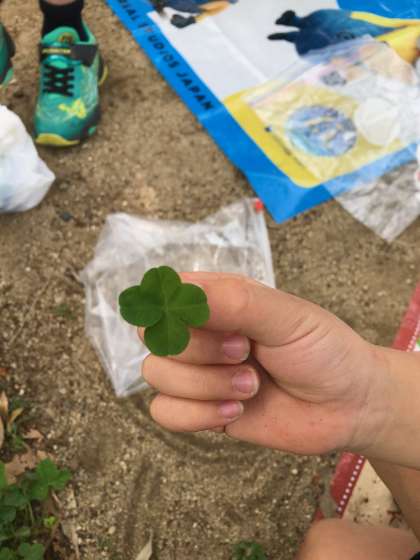 扇町公園で四つ葉のクローバーを見つけた子がいました。