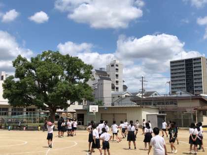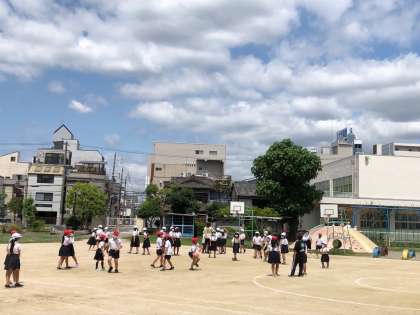 青い空、白い雲、爽やかな風。みんな遊びで盛り上がっている様子です。