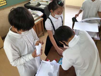 切ったり貼ったりする時は、黙々と集中して取り組んでいます。