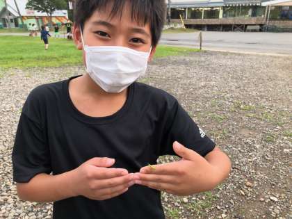 草原遊びでは、バッタも見つけました。かわいいですね。