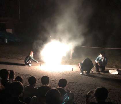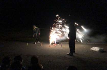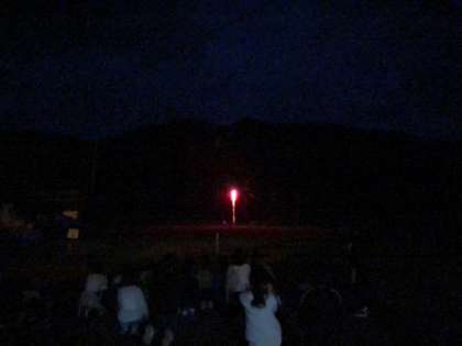 これも見づらいですが、1日頑張ったご褒美の花火です。実物はとっても綺麗です。