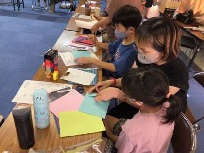 PTA主催の親子工作教室が開催されました。アートスクールの先生を講師に迎え、ゆらゆら揺れるモビールづくり。宇宙や天気などをモチーフに、ひと夏の思い出となる素敵な作品が出来上がったようです。