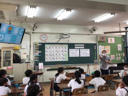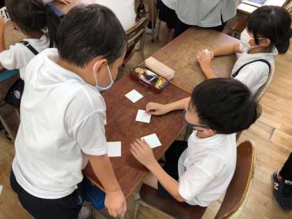 お店屋さんとお客さんに分かれて、自分のイニシャルのカードを買い物するというアクティビティに、子どもたちは楽しく取り組んでいました。