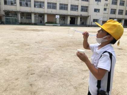 風に乗って、屋上のほうまで飛んで行ったしゃぼん玉もありました。