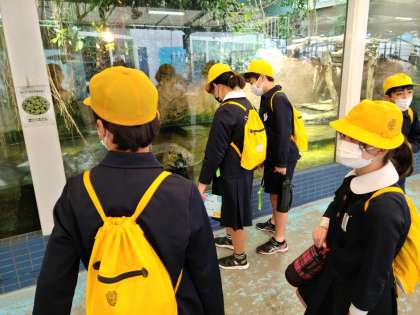 鳥羽水族館で見学中です。班での活動はここで最後です。お土産を買ったり、魚にふれたり、ショーを見たり、お昼ごはんを食べたりしながら楽しく活動しています。