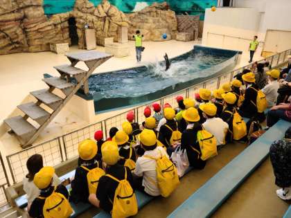 引き続き鳥羽水族館での活動風景です。アシカショーを前の方の席で見ていました。