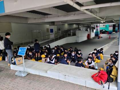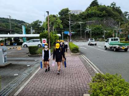 楽しい時間はまたまたあっという間。鳥羽水族館での活動を終えて活動班ごとに写真を撮りました。それからバスに歩いて移動。予定していた活動をすべて終えました。間もなく鳥羽水族館を出て泉尾東小に向けて出発します!