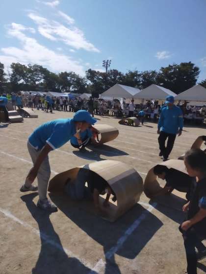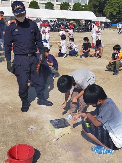 泉尾東の子どもたちも、手持ち花火、段ボールキャタピラー競争、バケツリレーに出場していました。