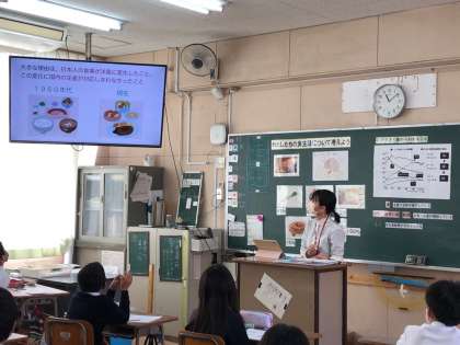 区内の栄養教諭の先生が、栄養指導に来てくださいました。今日は5年生が、私たちの食生活について学びました。