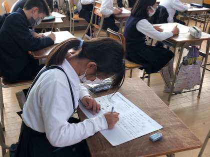 食料自給率を上げるために自分たちにできることは何か。真剣に考え、ワークシートに書き込んでいました。