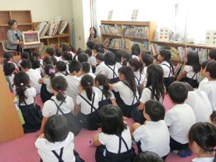 5年生は、林間学習に出かけましたが、その他の学年は、学校でのびのびと活動に参加しています。夏休み中に3回実施する予定の「お話をきく会」の今日は1回目。ボランティアの方の読み聞かせにたくさんの子どもたちが参加し、耳を傾けていました。