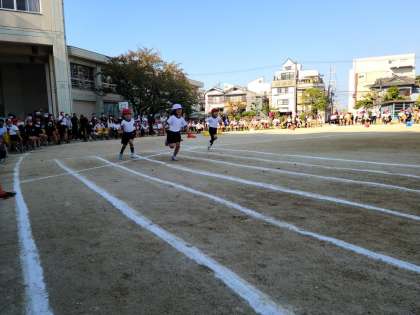 1年生の個人走「走れ!走れ!!」です。小学校初めての運動会です。がんばって走りました!
