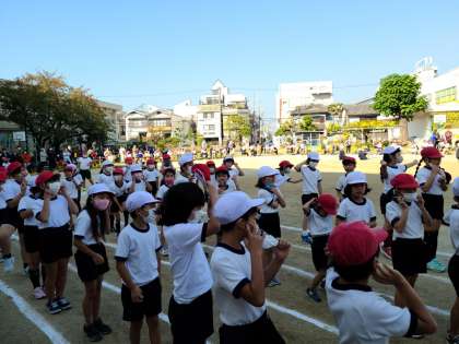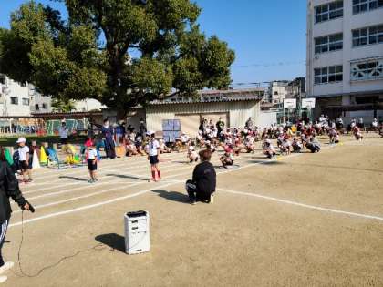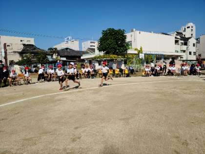 2年生個人走「くぐってこえて全力ダッシュ!」フープをくぐり、跳び箱こえて、ゴールを目指します!