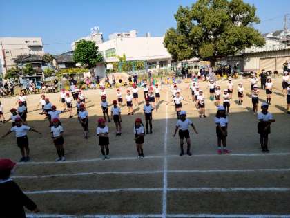 まずは、準備体操からです。体操係の高学年、お手本としてしっかりがんばってます!