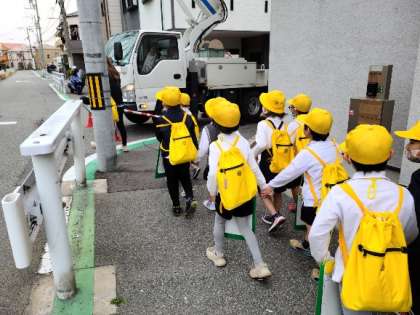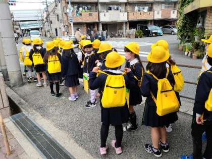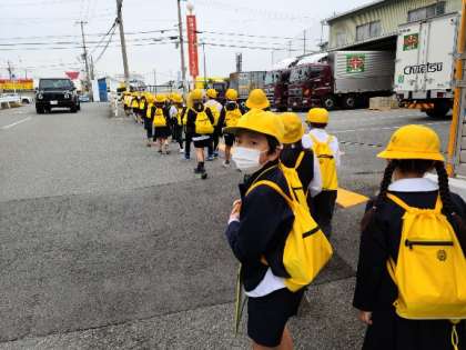 2年生がまちたんけんに行きました。2列に並んで行ってきます!