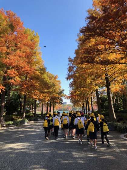 植物園に向かっています。とってもいい天気。紅葉もきれいです。