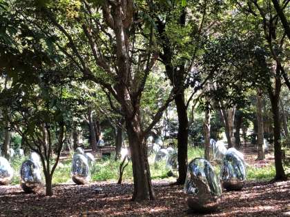 森の中にも不思議な物体が。夜はきっと幻想的な景色が見られることでしょうね、