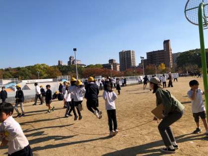 4〜6年生は少しの時間、自由広場で遊んでいます。まだまだ元気が残っています。