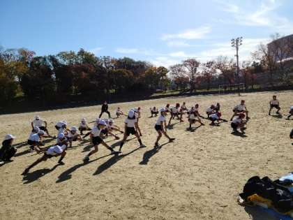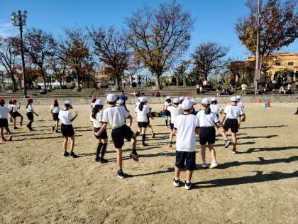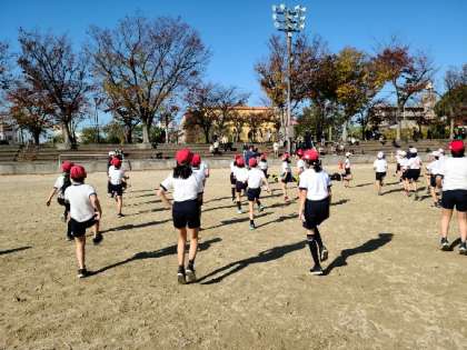 5年生が到着しました。昨年より距離がのびます。怪我しないようにしっかり準備体操しています。