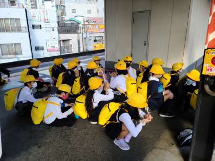 グループ活動も時間通りに集合できました。福島駅に着きました。大正駅にもどり、歩いて学校までもどります。みんながんばってよく歩きました!