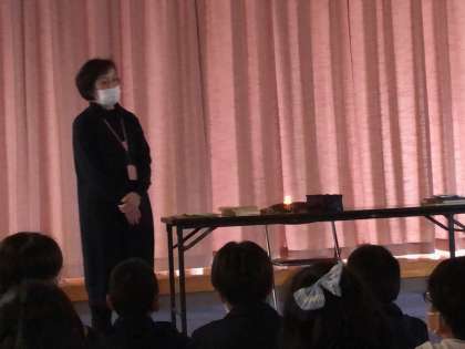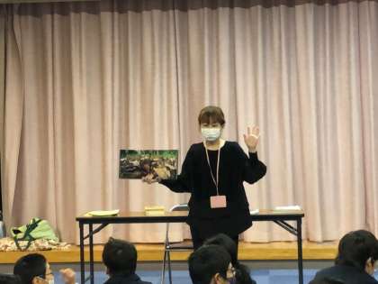 大正図書館より、5年生と6年生に読み聞かせにきていただきました。絵本や紙芝居、ストーリーテリングなど、子どもたちはお話の世界に夢中になっていました。他の学年にも来てくださいますのでお楽しみに。