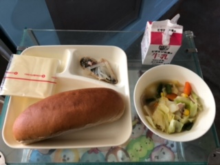 今日の献立は、あじのレモンマリネ、てぼ豆のスープ煮、スライスチーズ、こくとうパン、牛乳です。
