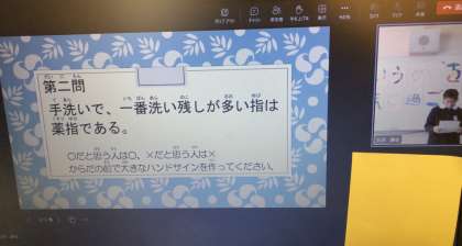 手洗いうがいに関するクイズでは、難問もありましたがとても分かりやすく解説してくれました。