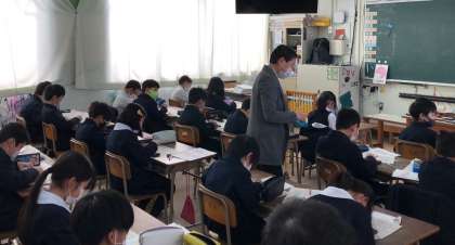 全国珠算教育連盟より出前授業に来ていただき、3年生がそろばんにチャレンジしました。