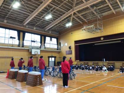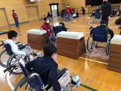 リハビリテーションセンターより出前授業に来ていただき、3年生が車いす体験をしました。