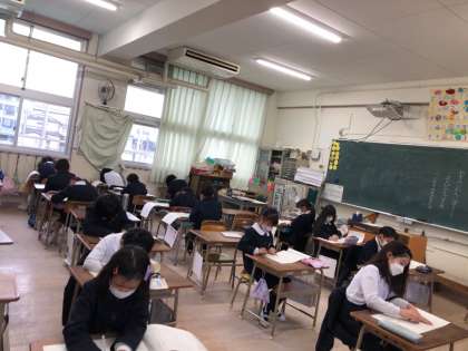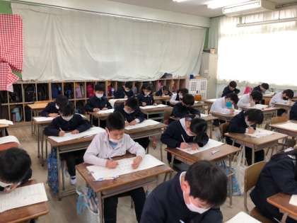 今日まで、一人ひとりがめあてをもって取り組んできました。いよいよ本番。真剣な表情で問題と向き合っています。