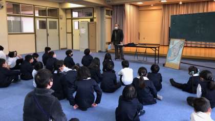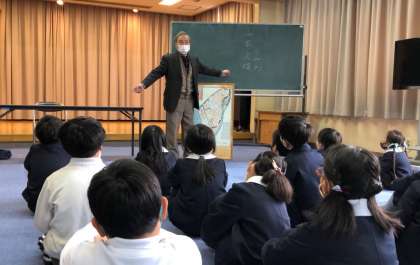 泉尾東小学校の大々々先輩が、3年生に昔の大正区のお話しをしに来てくださいました。